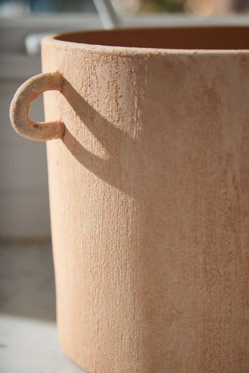 The artful ceramic Apricot Collection effortlessly marries form with function as sculptural home accent pieces. Made in Portugal, these pots feature 2 small C-shaped handles & surface variation for an organic look. Fill these watertight vessels with drop-in plants or style on a console table with florals or branches.