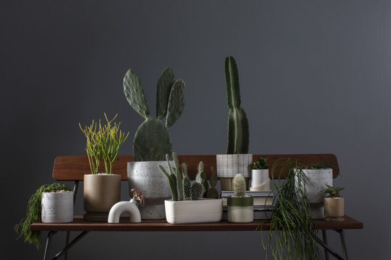 The ceramic pot that blends an earthy aesthetic with a geometric, architectural sensibility. Give your succulent or houseplant a natural, sand-glazed home in the Cable Pot with a subtly textured surface & unique hand printed white striation.