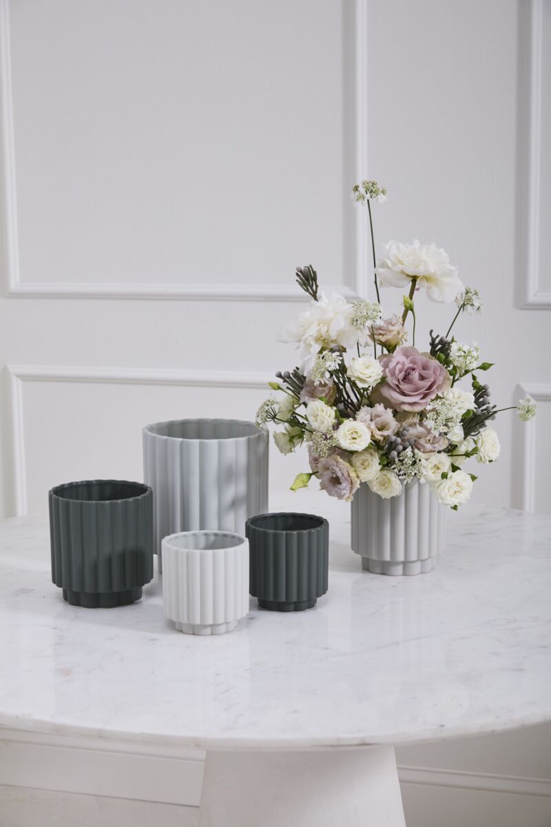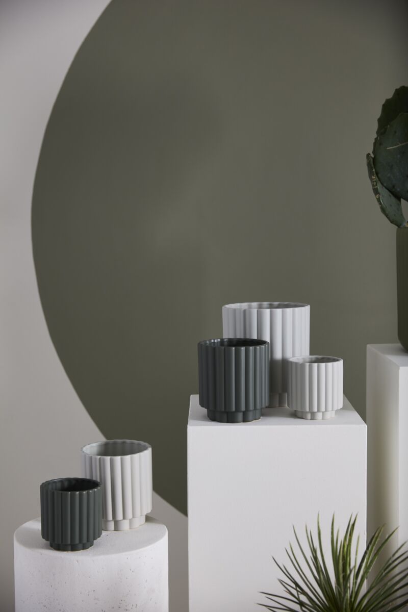 Perfect as an everyday basic with a rounded, fluted design, the large wide matte ceramic Carmen Pot is a stunning home for any houseplant with its warm color & super smooth finish. Watertight with a subtle, versatiledark green, turquoise pop of color, this modern pot is ideal for a 6-inch standard drop-in plant or florals. It comes in multiple sizes & colors that coordinate beautifully with our other basics, like the Kendall, Romey, & Beam Collections.