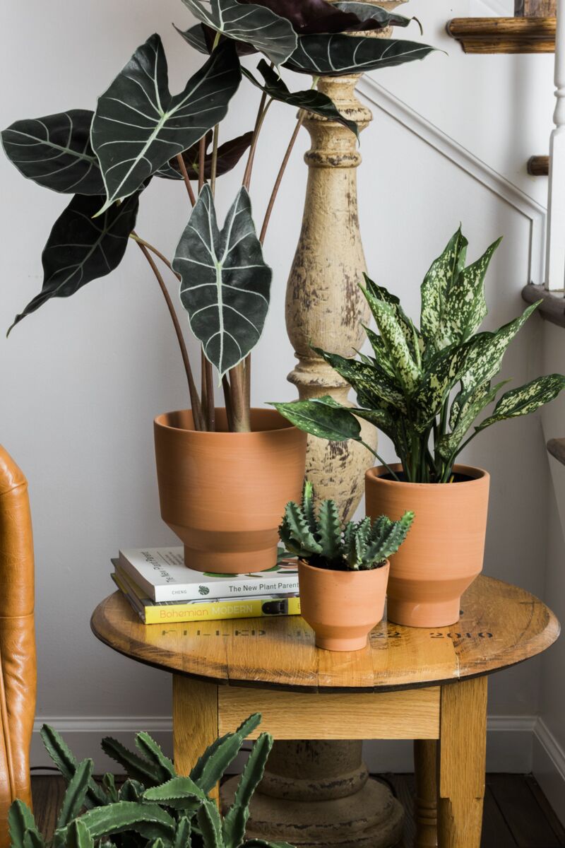 The Crescendo Collection features a modern functional footed pot in natural terra-cotta. Suitable for indoor or outdoor use.