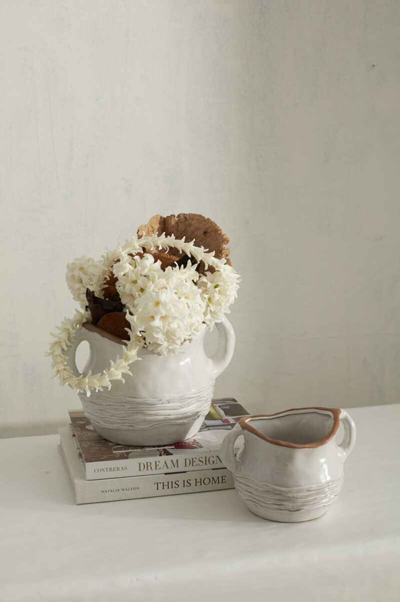 The irregularly-textured Etruscan Pot looks like it was formed by the sea over centuries. Instead, this ceramic pot is artisan made & glazed in matte white with brown bisque edges. This show-stopper makes a perfect pairing for greenery and florals.