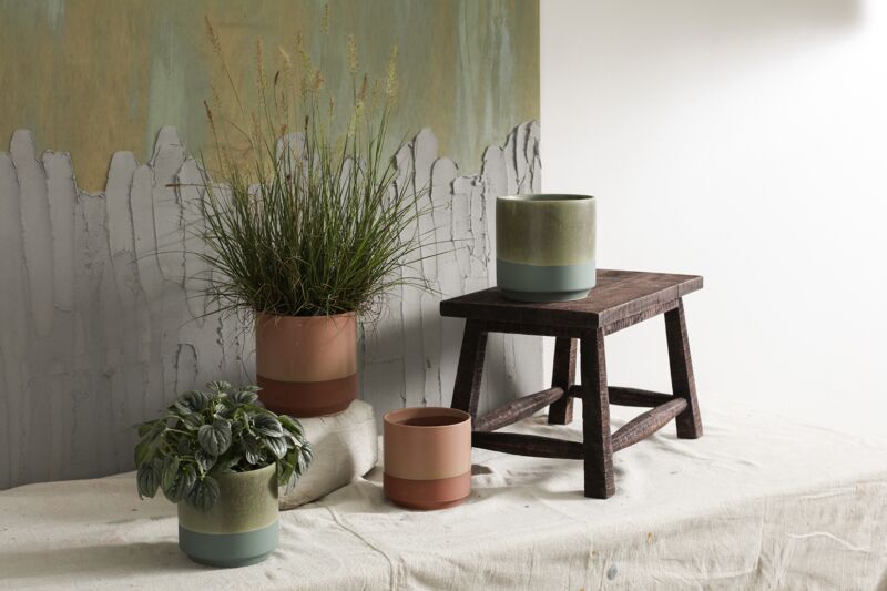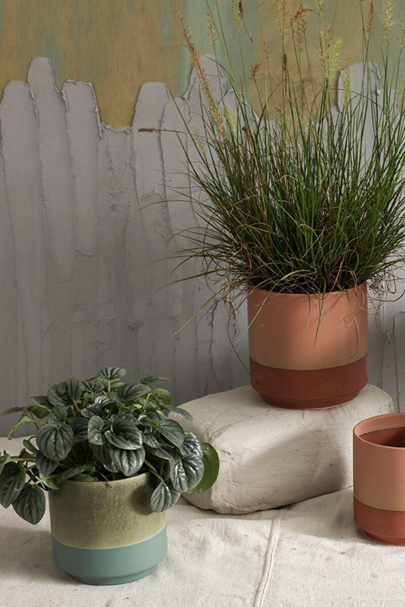 The cool dual tones of the Gavin Pot pair with a simple footed design and a twice-fired reactive glaze finish, making this pot a perfect backdrop for every plant.