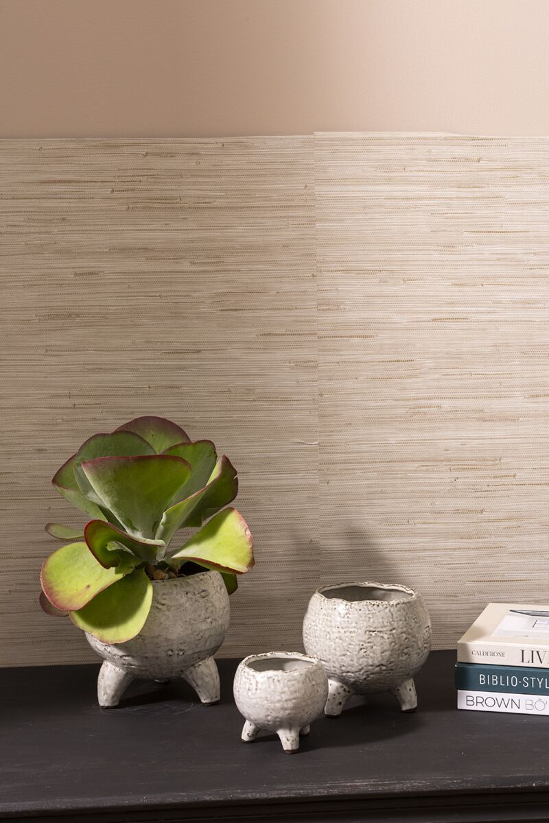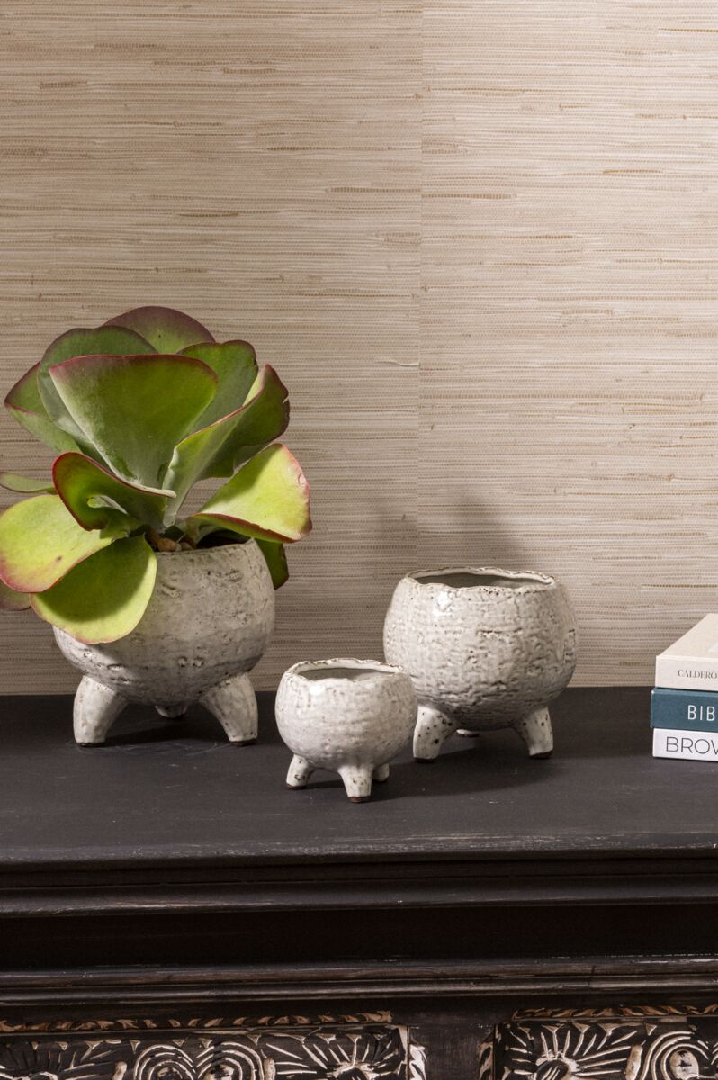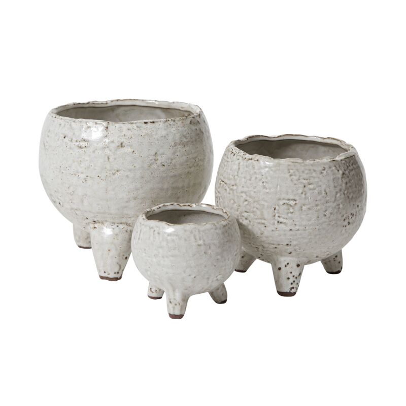 The cutie Noah Pot in ceramic features three felted feet, a taupe glazed finish, and a round silhouette for a simple and modern look. Designed to fit a 3", 4.5" and 6” drop-in pot respectively.